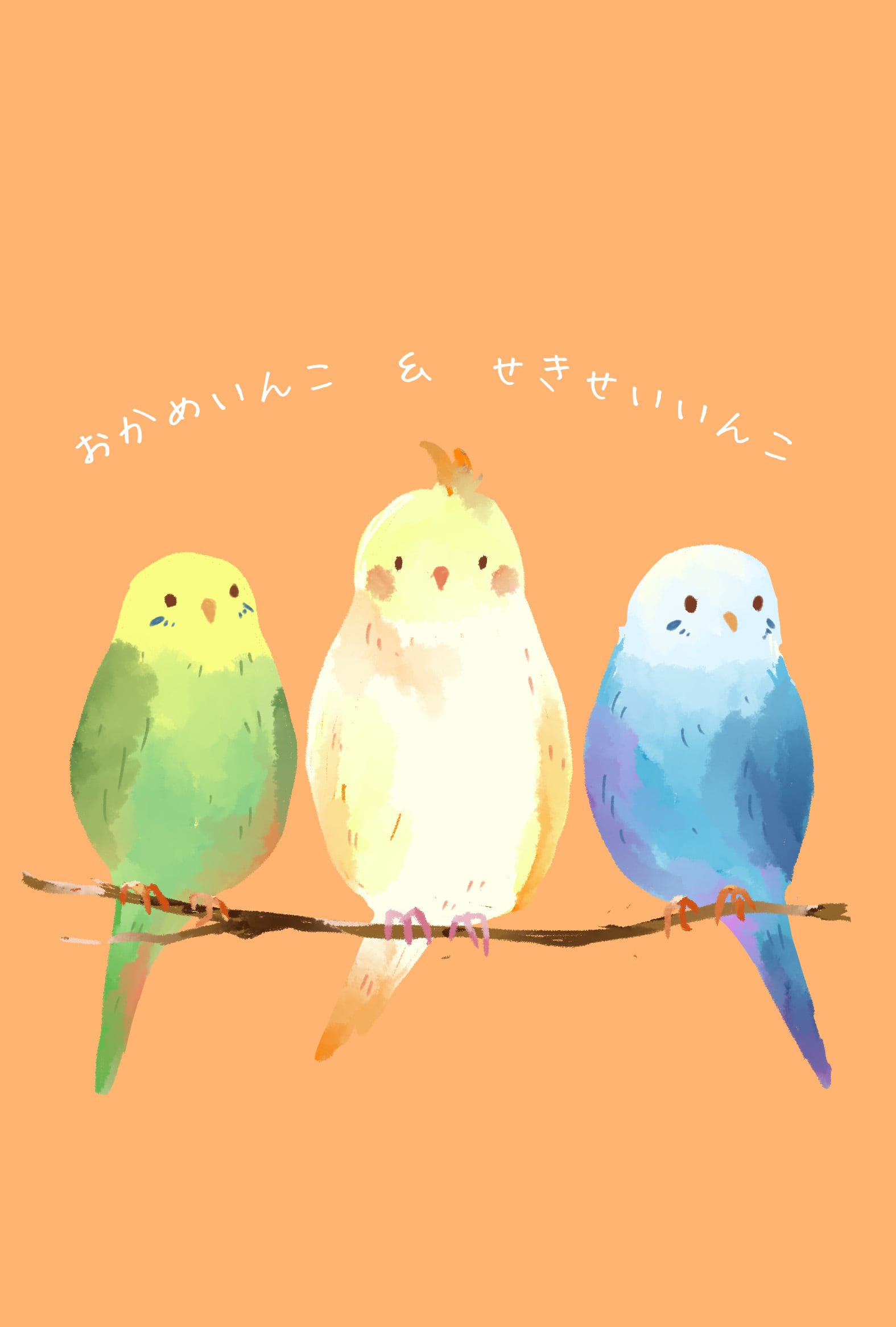 ○セキセイインコ オカメインコ 色鮮やか ほっこり ゆるゆる かわいい ポストカード メッセージカード 水彩画風